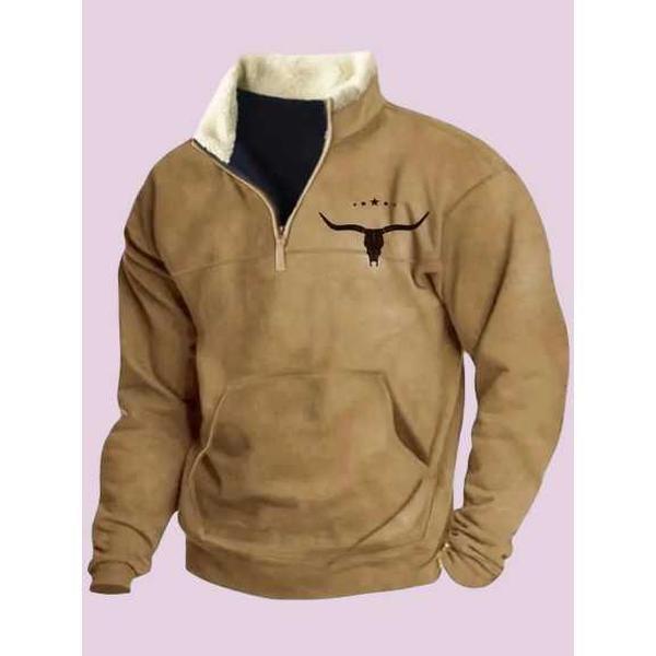 Men's Retro Western Denim Zipper Sweatshirt Printed Stand Collar Long Sleeve Casual Jacket Menswear Outfit Coats Tops