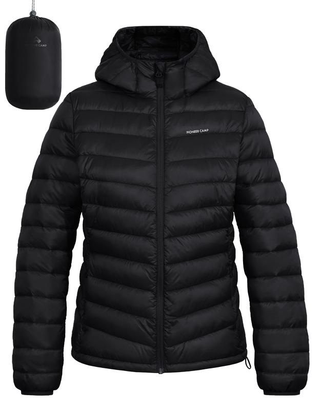 Women's Packable Puffer Jacket Winter Lightweight Water-Repellent Quilted Coat with Hood Casual Long Sleeve 4-Pocket Storage Womenswear Outerwear