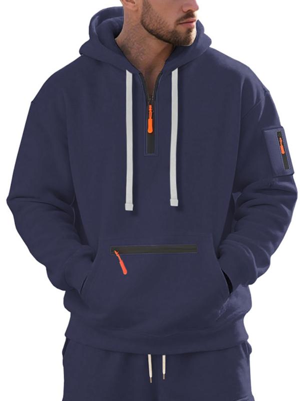 Men's Fall Winter Hooded Sweatshirt, Heavyweight Fleece Pullover, Casual Sporty Jacket, Long Sleeve Drop Shoulder Design