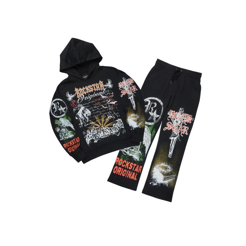 Men's Milano Printed Hoodie and Drawstring Sweatpants Set with Pockets, Casual 2-Piece Sweatshirt and Jogger Outfit, Long Sleeve Fall Winter Sportswear, Athleisure Tracksuit Set for Indoor and Outdoor Activities