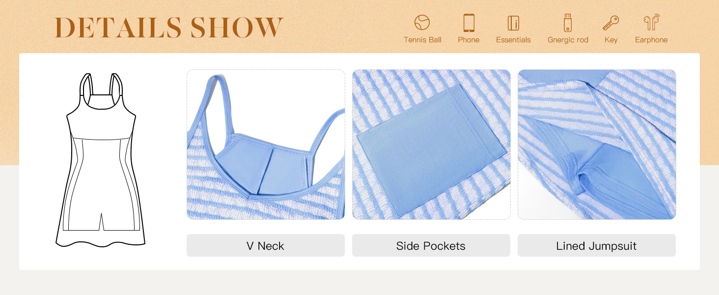- Match: This versatile dress can be worn on and off the court and to and from your favorite workouts, easy to pair with t-shirts, crop tops, camis, sweatshirts, sandals,slippers, or sneakers for a cute flattering look