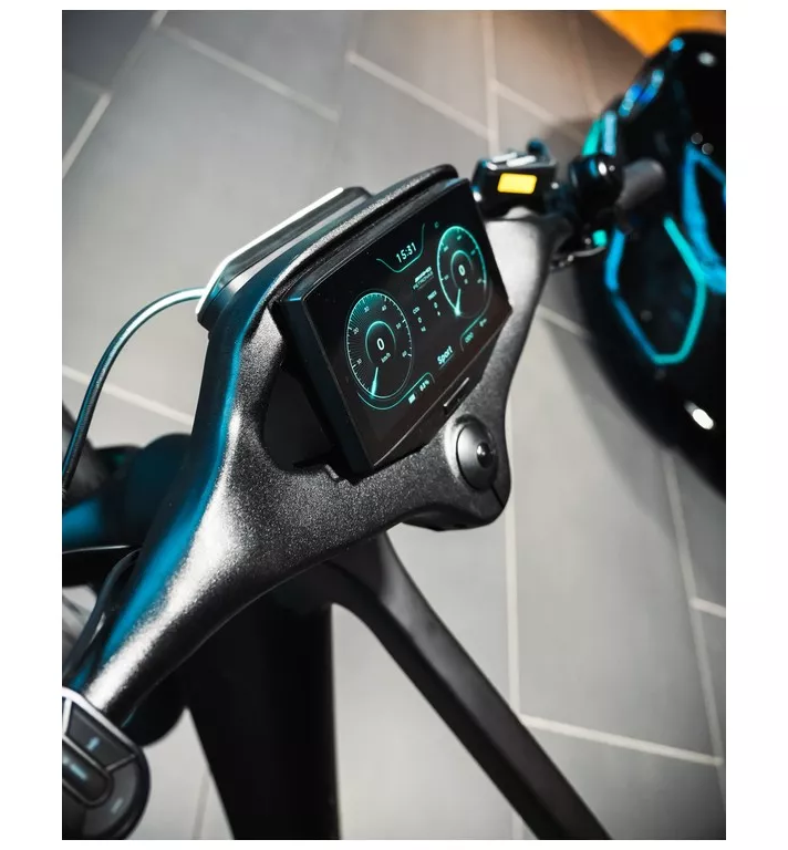 The , features integrated light-sensing headlight, brake lights, and even thumb-operated turn indicators. The helmet is seamlessly linked to the telemetry of the eBike and will automatically SMS loved ones in the event of a crash.