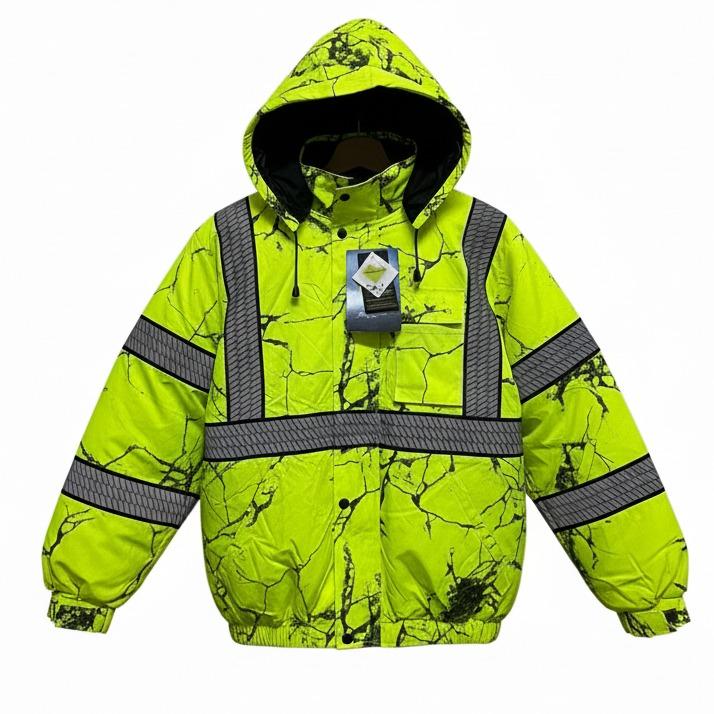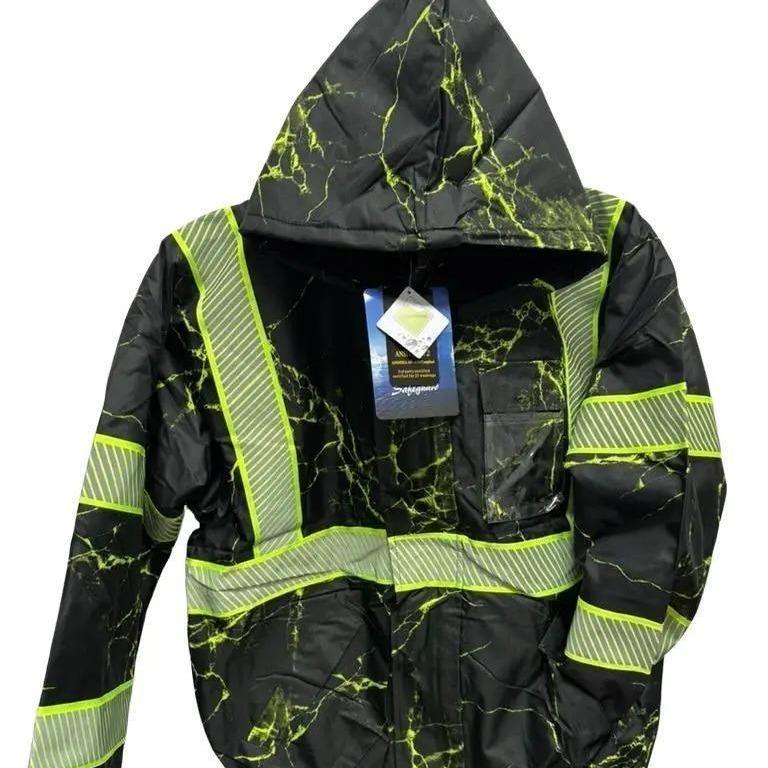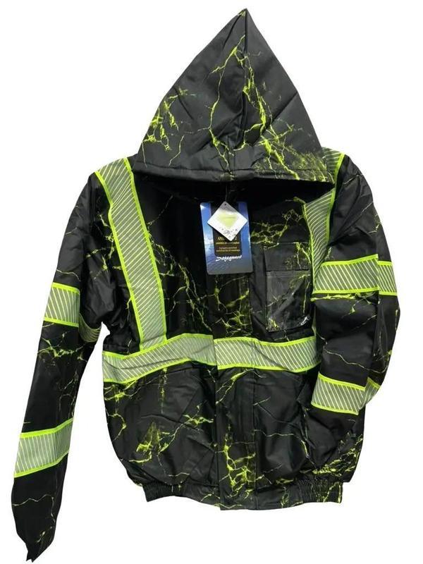 Men's High Visibility Reflective Insulated Waterproof Winter Bomber Jacket - Coats, Menswear waterproof safety Outdoor Zipper