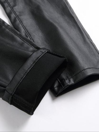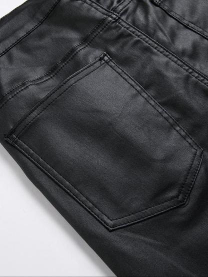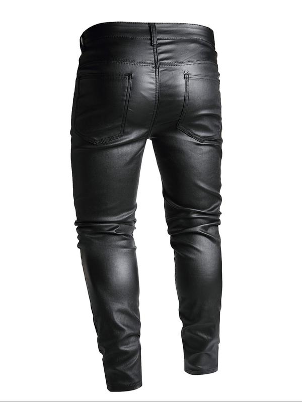 Men's Solid Color PU Leather Pants, Tight-fitting Street Fashion Casual Comfy Pocket Trousers for Daily Wear, Men's Bottoms for All Seasons Casual Fitted Pockets