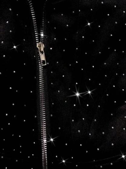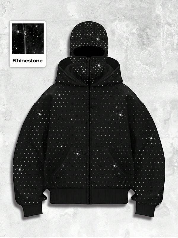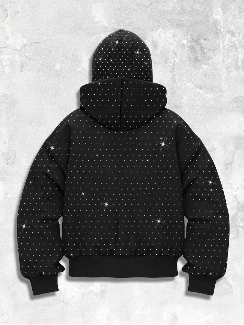 Men's Street Style Rhinestone HooMen's Street Style Rhinestone Hooded Sweatshirt, Pocket and Zip Design, Fall & Winter Wear, Geometric Pattern, Fitted Fitded Sweatshirt, Pocket and Zip Design, Fall & Winter Wear, Geometric Pattern, Fitted Fit