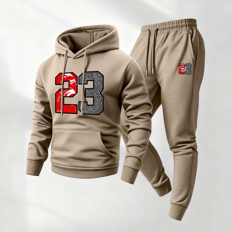 Men's Retro Basketball 23 Patterned Hoodie And Drawstring Track Pants Set, Men's Casual Athletic Long-Sleeved Hooded Jacket And Pants, Suitable For Fall And Winter, Street Style Hoodie Set, Everyday Wear, Indoor And Outdoor Sportswear